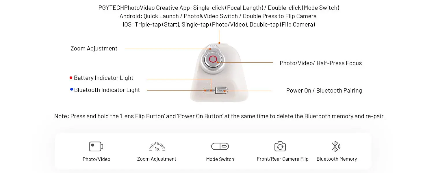 PGYTECH mobiler Kamera-Controller, magnetisches Fülllicht, MagCam Bluetooth-Fernbedienungskamera