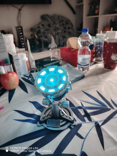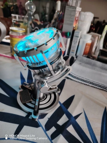 Inspired by the iconic arc reactor from the legendary hero saga, this meticulously crafted display light captures the dramatic tension of palladium-induced decay. This premium collectible features a motorized plate-switching mechanism that recreates the hero's ritual of replacing toxic energy cores, complete with dual swappable plates (weathered and pristine), ambient LED lighting, and a custom display stand. Crafted from zinc-aluminum alloy with electroplated plastic details, this 15×11×11cm masterpiece honors the moment when a worn-out core couldn't stop a resilient heart. Perfect for Marvel fans, collectors, and anyone who appreciates the intersection of technology and heroism.