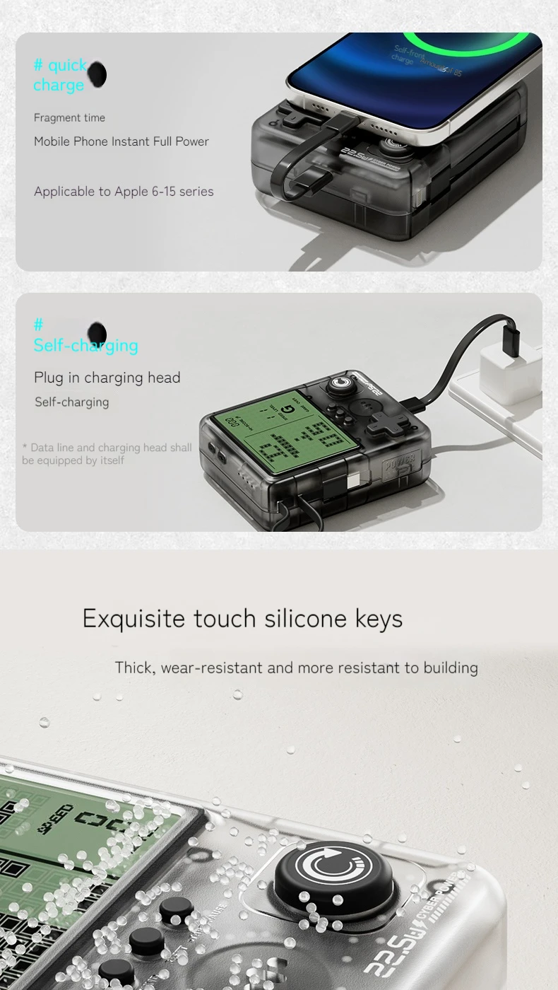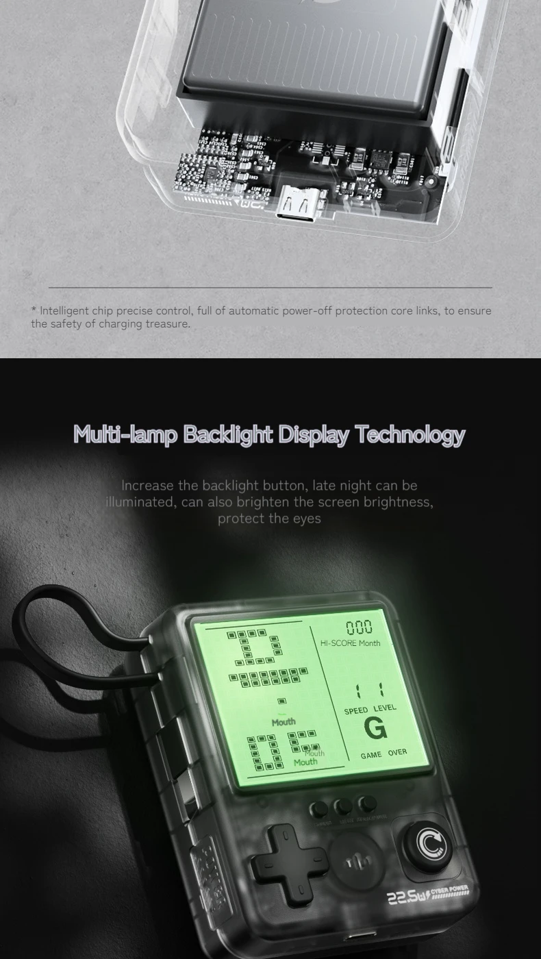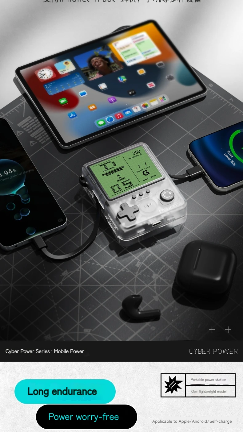 Experience the perfect fusion of nostalgia and modern technology! This innovative Cyber Power Bank isn't just a charger—it's a portable gaming console that brings classic pixel games to life while keeping your devices powered up. Perfect for gamers, travelers, and tech enthusiasts who refuse to choose between staying charged and staying entertained.