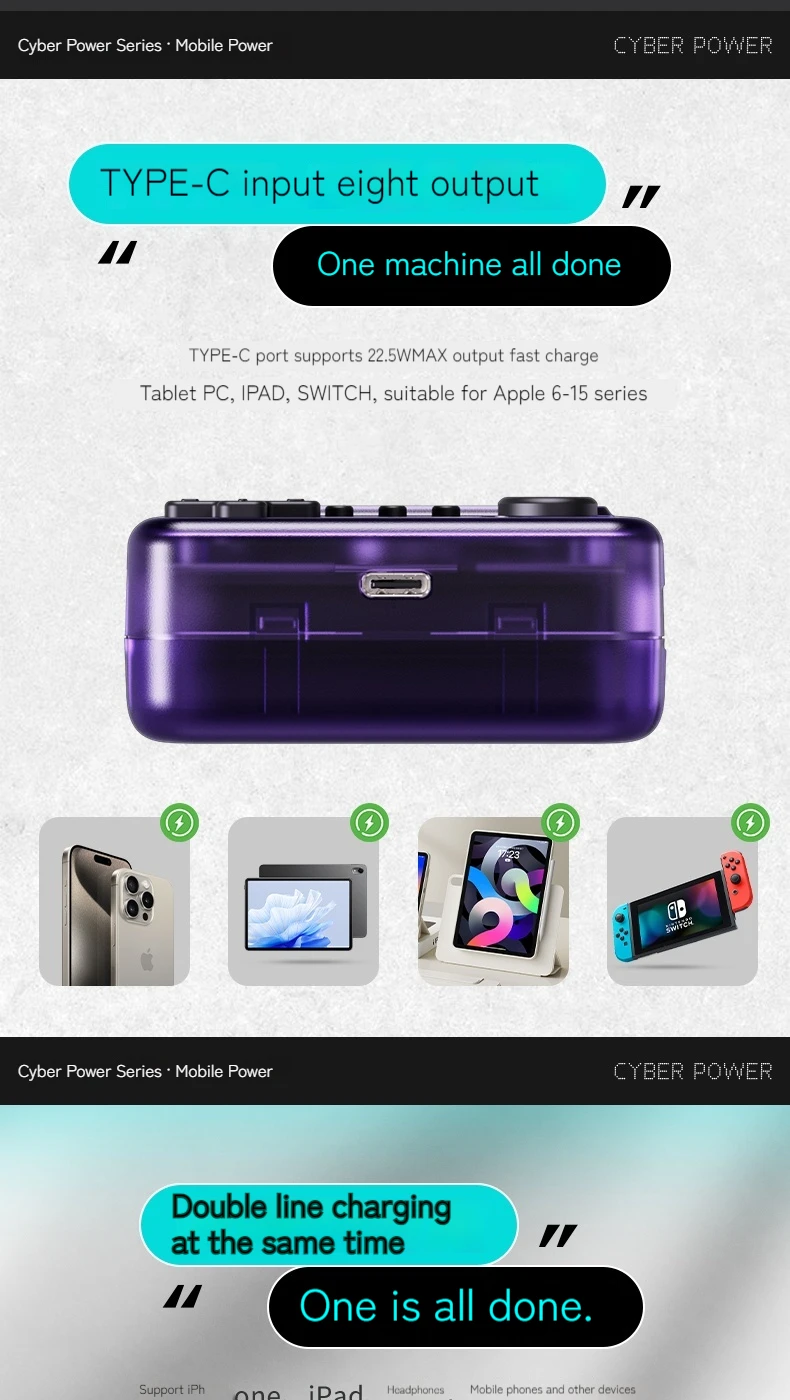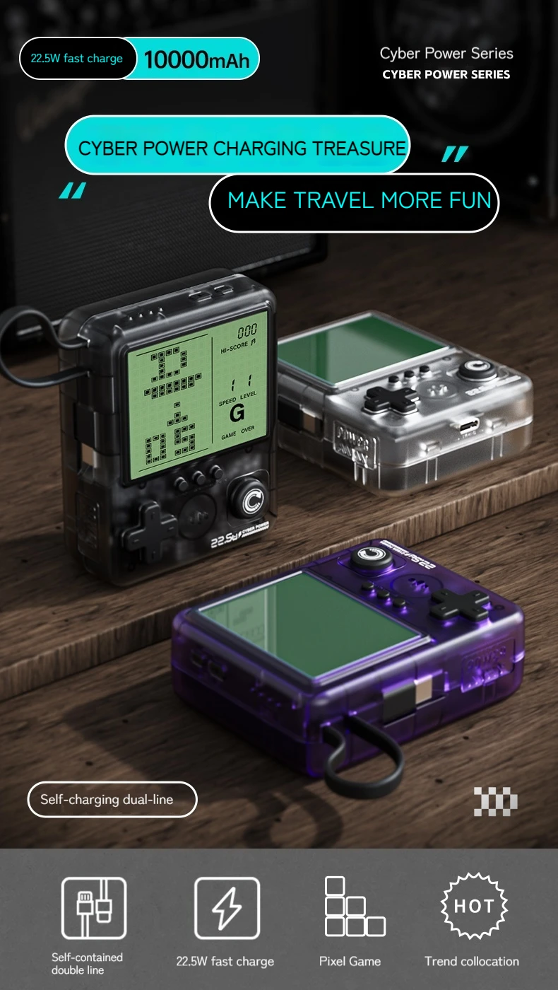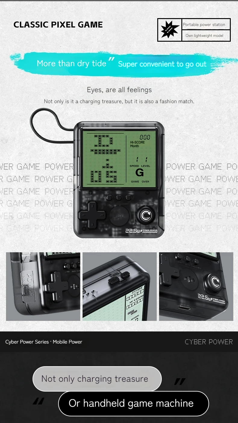 Remember the golden age of handheld gaming? Now you can relive those memories while solving a modern problem—keeping your devices charged. This Cyber Power Bank combines the best of both worlds: the nostalgic joy of classic pixel games with the practical necessity of portable power.