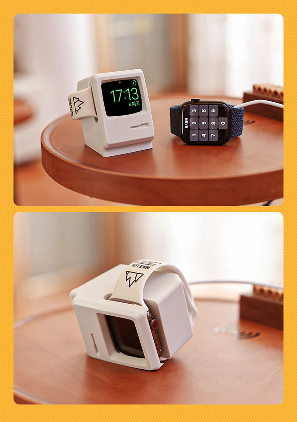 Give your Apple Watch a blast from the past! This fun and functional silicone charging stand transforms your modern Apple Watch into a miniature retro desktop computer or classic gaming console while it charges. Perfect for your desk, nightstand, or as a unique gift for any retro tech enthusiast.