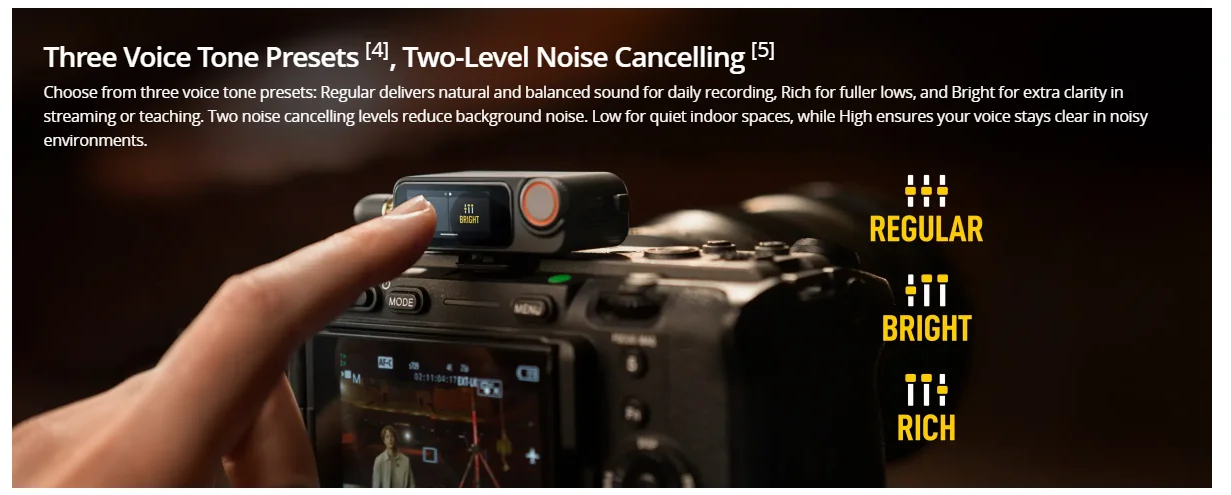 Crystal-Clear Recording: Delivers pristine, low-noise audio quality, perfect for vlogging, interviews, live streaming, and filmmaking.