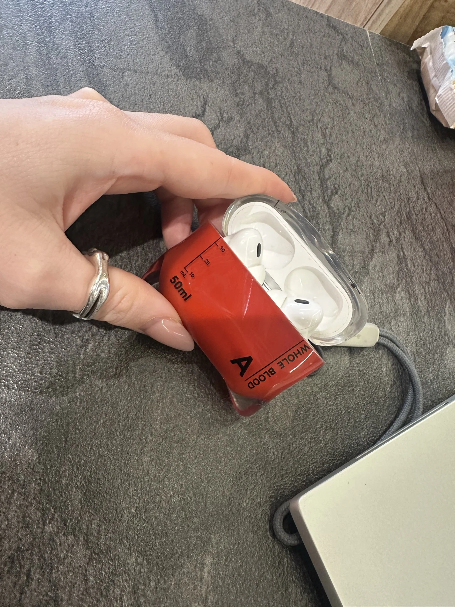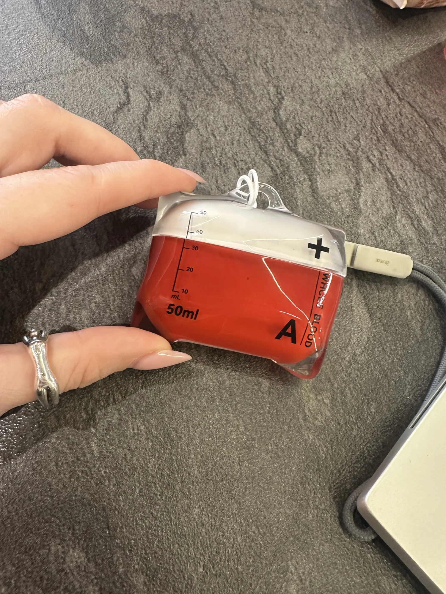The viral blood bag case that's breaking the internet. Customize your AirPods with your actual blood type (A, B, O, AB, or Rh-) in this ultra-realistic IV bag design. Made from premium liquid silicone with authentic medical details, this case isn't just protection—it's a conversation starter that shows off your unique identity. Join thousands who've already personalized their tech with the most talked-about case on social media.