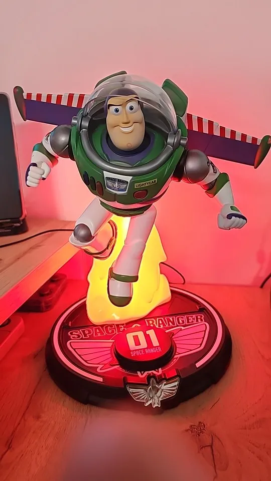 Bring the magic of Toy Story to your desk with this incredible Buzz Lightyear wireless fast charger. This isn't just a charging pad—it's an interactive collectible that lights up with stunning LED animations and plays authentic Buzz Lightyear sound effects while powering your device. Watch as the iconic launch pad illuminates and Buzz comes to life every time you charge your phone. Perfect for Disney fans, Toy Story collectors, and anyone who wants to add some Pixar magic to their daily charging routine.