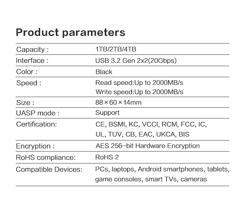 *Interface: USB 3.2 Gen 2x2 (20Gbps)