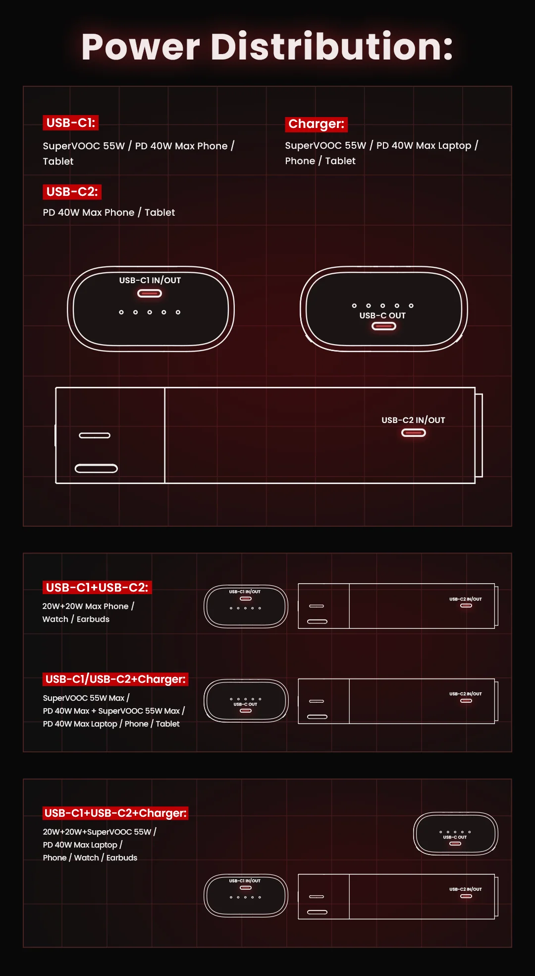Pouch supports fast charging protocols including SUPERVOOC (55W), PD3.0, and QC4.0.